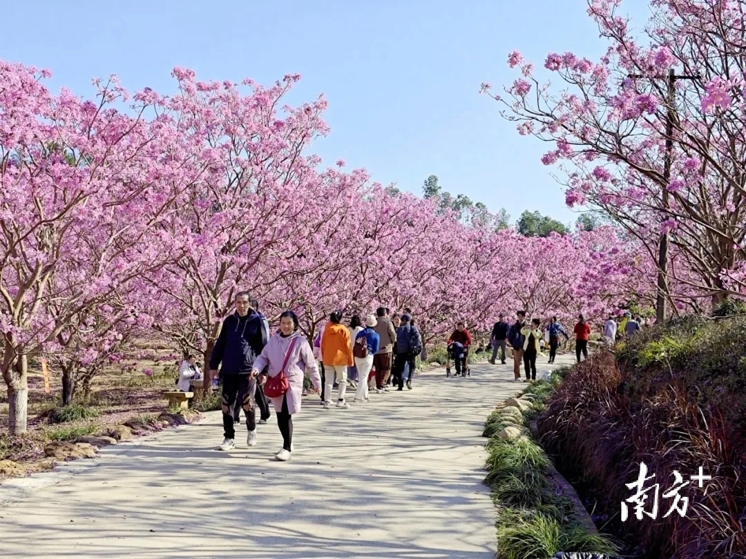 生态赏花与亲子游热度不减。大泽绿美生态园40万平方米紫花风铃木绚烂绽放,形成梦幻花海,围炉煮茶等惬意体验广受欢迎。七星山亲子牧场同样以紫花风铃为幕,结合萌宠互动、户外派对等活动,假期吸引4.2万人次游玩。