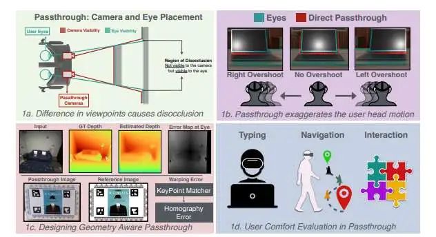 团队引入了一个术语“几何感知透视(Geometry Aware Passthrough/GAP)来描述基于深度的重投影算法。以前的研究假设,与直接透视相比,GAP减少了不适,但据研究人员所知,没有实证研究直接调查了这一假设。